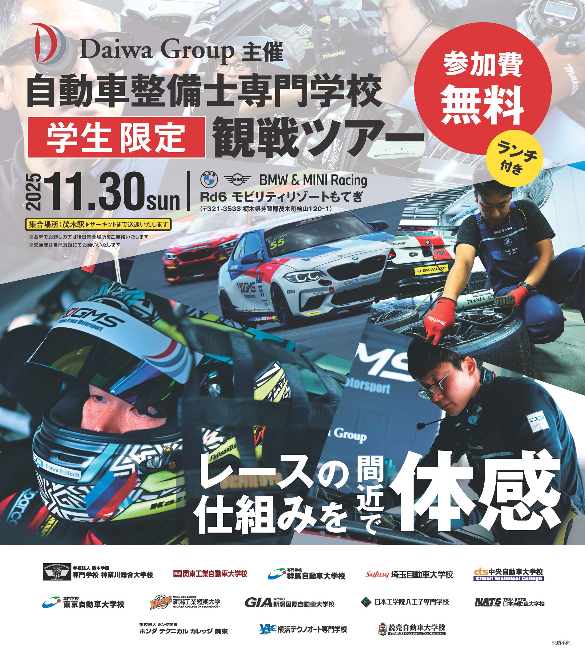 <自動車整備士専門学校の学生限定> DGMS観戦ツアーのご案内