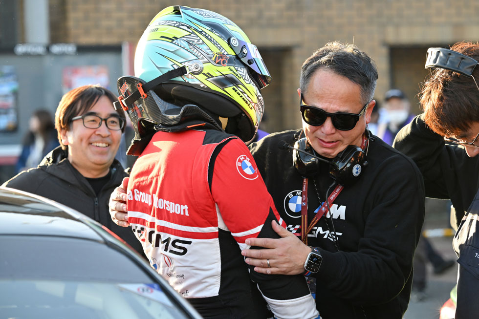 チェッカー後、チーム全員がこらえていた涙を流しながら、これまでの苦労、達成した喜びを分かち合いながら、抱き合い、握手を交わします。